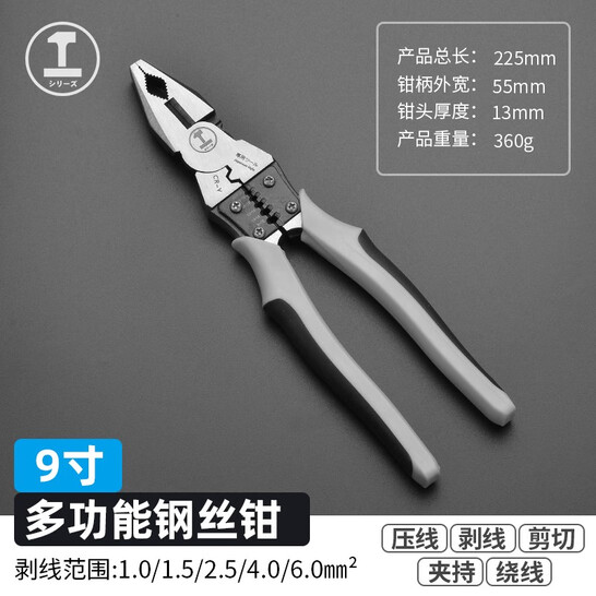 绿林(GREENER)工业级多功能老虎钳 省力电工工具钢丝钳子套装尖嘴钳斜口钳剥线钳手钳日本德国品质 【五合一多功能】9寸钢丝钳-225mm