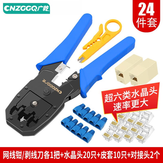 多功能三用网线钳套装24件套电话网线4P6P8P水晶头只护套对接头 压线钳接线钳剥线刀 网线钳24件套