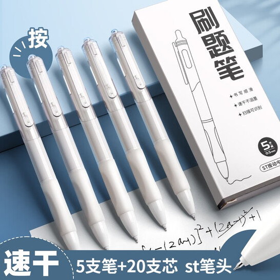 思进(SIJIN) 小白笔简约时尚ST笔尖按动黑色0.5mm中性笔速干顺滑刷题笔学生考试专用笔 刷题笔5支装+20支原装笔芯