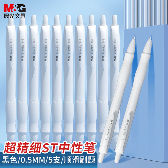 晨光(M&G)文具0.5mm黑色速干按动中性笔 大容量高颜值签字笔 i-write系列ST笔头水笔 5支/盒AGP02326A