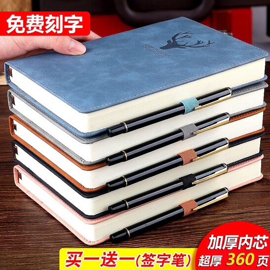 忠简文具 a5笔记本子超厚360页皮面简约商务记事本高档办公文具教师公司可定制LOGO A5蓝色【单本款】